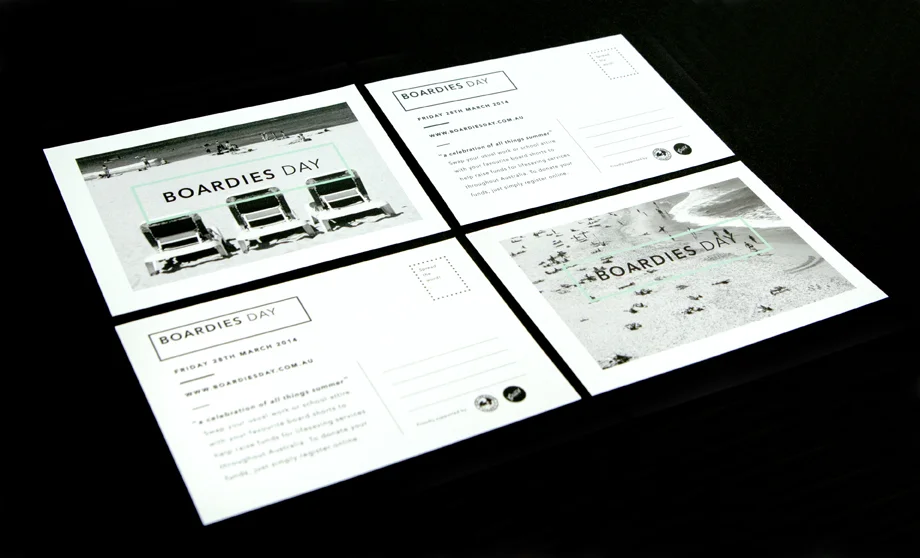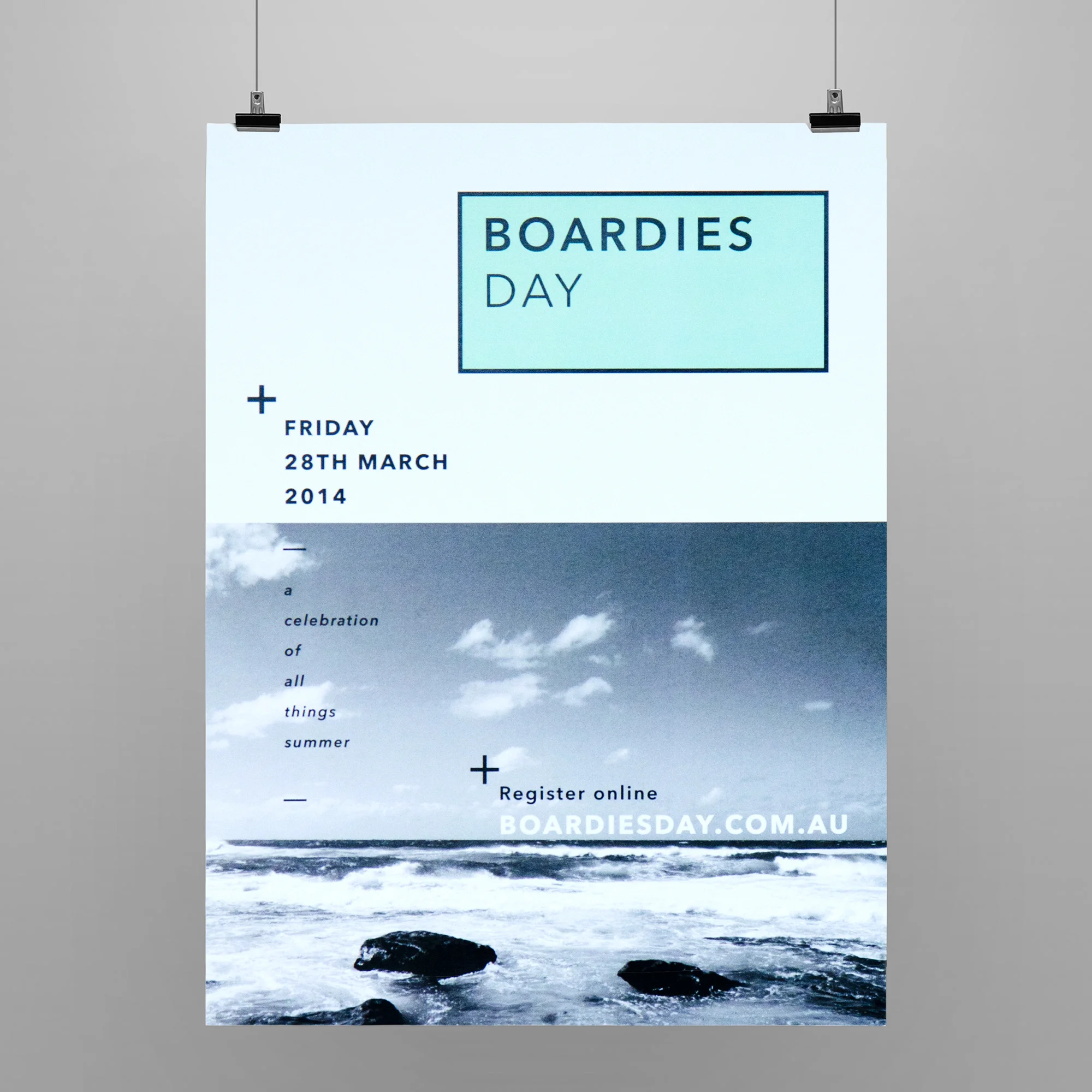 The brief for this project was to select a Non-for-Profit organisation and create a visual identity for an event the organisation could be running, applying this to promotional print material. I chose Boardies Day, which is an annual fundraising event run by Surf Life Saving Australia. My approach was to draw on my personal passion for sun, sand and surf, through photography and single aqua colour choice. My designs are bold and graphic, fitting in with the current surfing world aesthetic.